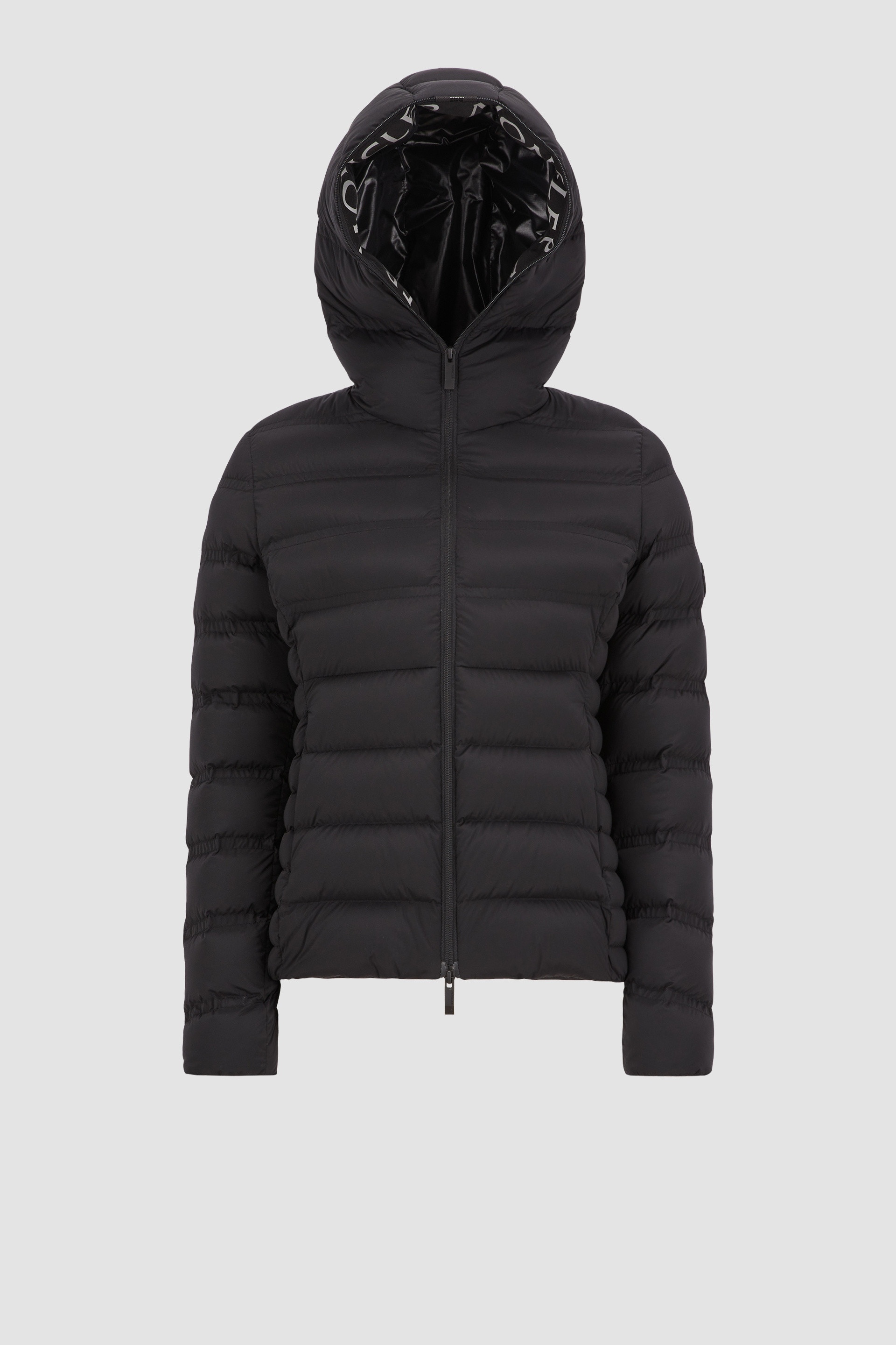 The Alete short down jacket is designed for modern women who place equal value on function and aesthetics. Refined and minimalistic, the Alete down jacket is emblematic of the Matt Black collection. Crafted from stretch nylon, the short puffer is enhanced with ripstop lining and a hood. Graphic logo lettering adds the finishing touch. - Crafted from recycled stretch nylon - Recycled micro ripstop lining - Down-filled - Hood - Zipper closure - Zipped pockets - Elastic hem and cuffs - Embossed silicone logo SIZE AND FIT - The model is wearing a size 0 and is 177 cm tall - The model measures: bust 79 cm, waist 60 cm, hips 86 cm - Slim fit COMPOSITION AND CARE EXTERIOR: 85% Polyamide / Nylon, 15% Elastane / Spandex; LINING: 100% Polyester; HOOD LINING: 100% Polyester; PADDING: 90% Down, 10% Feather Hand wash; Do not bleach; Do not tumble dry; Ironing maximum temperature 110°C - without steam; Do not dry clean; Do not professionally wet clean; Flat dry in the shade; Wash separately; do not soak; It is advisable to wash and iron the garment on reverse.; Do not twist or wring; PROTECT TRIMS WHILE WASHING; Iron with a cloth between Product code J10931A00021595FK999 Made in Armenia