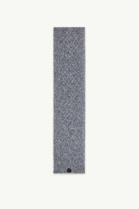 An elegant accessory for when the temperature drops, this scarf for women is crafted from an alpaca blend with a metallic finish. Whether enjoying winter in the city or at the chalet, this scarf is designed to provide warmth. The heavy knit accessory is crafted from a luxurious alpaca blend, made unique though a light-catching finish. DETAILS - Crafted from an alpaca, nylon, viscose, wool and metallic fiber blend - Aran stitch - Gauge 3 - Logo patch COMPOSITION BASE FABRIC: 56% Alpaca, 31% Polyamide / Nylon, 5% Viscose / Rayon, 5% Wool, 3% METALLIZED FIBER Product code K20933C00033M1209P99 Made in Italy