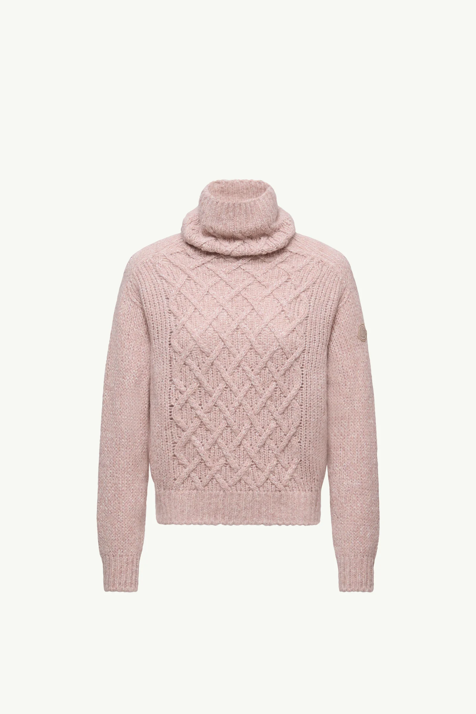 A foundational piece for any season, this turtleneck sweater for women is knit from a sophisticated alpaca blend. An invite to the art of layering, this turtleneck is crafted from a plush alpaca blend. Taking cues from classic knitwear, the heavy weight knit sweater is crafted with a textured Aran stitch. DETAILS - Crafted from an alpaca, nylon, viscose, wool and metallic fiber blend - Aran stitch - Gauge 3 - Turtleneck - Logo patch SIZE AND FIT - Loose fit COMPOSITION BASE FABRIC: 56% Alpaca, 31% Polyamide / Nylon, 5% Viscose / Rayon, 5% Wool, 3% METALLIZED FIBER Product code K20939F00015M1209P55 Made in Romania