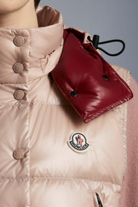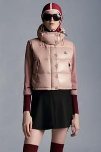 The Alpiste is a feminine Moncler vest with an authentic, timeless look that nods to the unforgettable paninari of the ’80s in its colors and details. Crafted in iconic shiny nylon laqué, this style is characterized by its classic boudin quilting that provides protection and optimal warmth. It is characterized by its cropped length, drawcord hem and detachable hood to effortlessly update a look according to your needs and the weather. - Vest for women - Crafted in shiny nylon laqué - Down filled and boudin quilted - Contrast color shiny nylon laqué lining - Detachable hood - Front zipper covered by storm flap with enameled snap closures - Side pockets with zipper closures - Elastic drawcord hem - Felt Moncler logo on chest - Short length SIZE AND FIT - The model is wearing a size 1 and is 180 cm tall - Featuring a cropped length. Designed for a regular fit through the shoulders and body. The elasticated hemline allows to personalise the styling. COMPOSITION AND CARE EXTERIOR: 100% Polyamide / Nylon; LINING: 100% Polyamide / Nylon; HOOD LINING: 100% Polyamide / Nylon; PADDING: 90% Down, 10% Feather Wash max 30°C - Mild process; Do not bleach; Do not tumble dry; Ironing maximum temperature 110°C - without steam; Dry cleaning in tetrachloroethene or with hydrocarbons - mild process; Professional wet cleaning - mild process; Flat dry in the shade; Wash separately; It is advisable to wash and iron the garment on reverse.; PROTECT TRIMS WHILE WASHING Product code G20931A0005768950512 Made in Moldova
