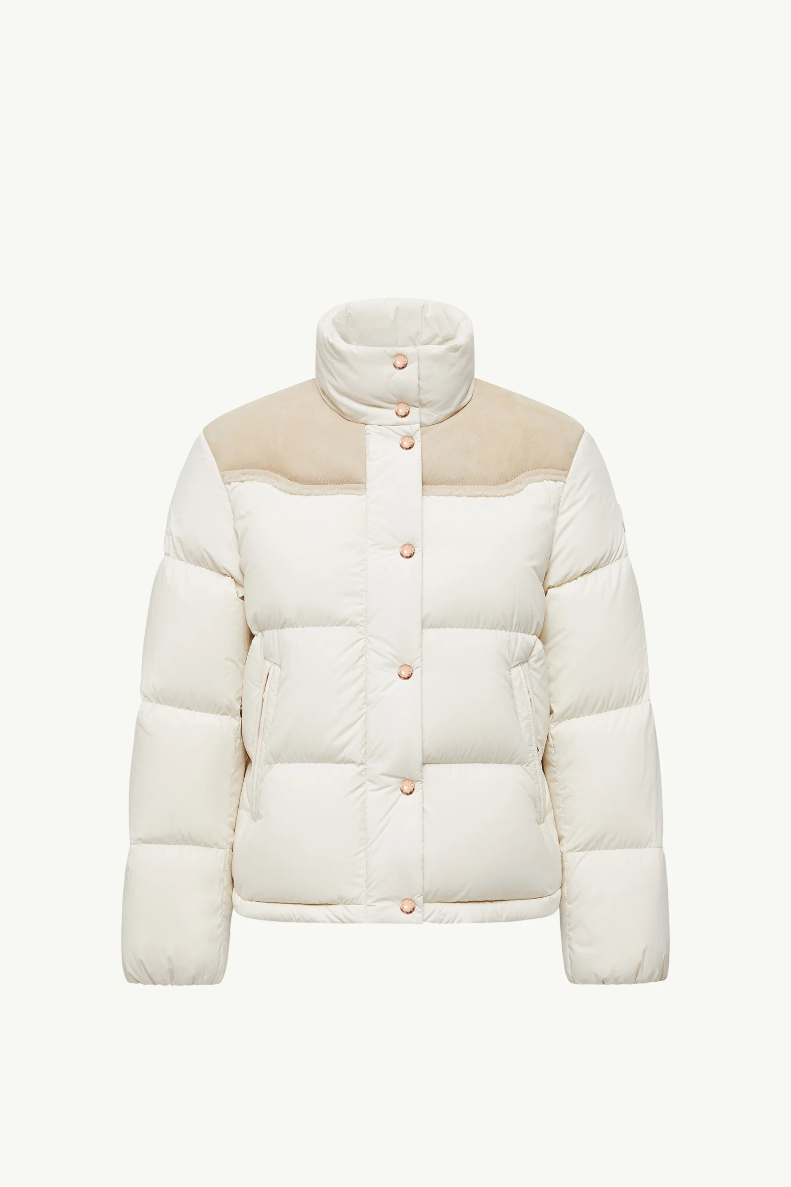 Elevating an everyday essential, the Angelys short down jacket for women is accentuated by supple suede accents. An interplay of different textures, the Angelys puffer brings technical and precious materials together. The short down jacket is crafted from micro soft, a lightweight nylon fabric noted for its plush feel. Encapsulating everyday elegance, supple suede accents complete the warmer. DETAILS - Crafted from micro soft nylon - Polyester lining - Down-filled - Suede front and back yoke with long-haired sheepskin trim - Zipper and snap button closure - Zipped pockets - Elastic cuffs - Hem with drawstring fastening - Logo patch SIZE AND FIT - Regular fit - Cropped - Drawstring allows personalization - Length (collar to hem): 55 cm COMPOSITION EXTERIOR: 100% Polyamide / Nylon; LINING: 100% Polyester; PADDING: 90% Down, 10% Feather; DETAILS PADDING: 100% Polyester;Leather with hair 1: LAMB; Origin: Spain; Dyed Product code K20931A0023159815050 Made in Romania