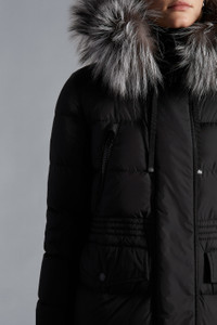 The Aphroti long down jacket for women encompasses Moncler’s distinct style. Designed to protect from the elements, the Aphroti long down jacket is crafted from water repellent nylon rainwear. The down coat boasts a hood enriched with a fox fur trim that can be easily detached, depending on your mood or the weather conditions. - Crafted from nylon rainwear - Nylon lining - Down-filled - Hood with a detachable fox fur trim - Zipper closure - Pockets with zipper and snap button closure - Felt logo COMPOSITION AND CARE EXTERIOR: 100% Polyamide / Nylon; LINING: 100% Polyamide / Nylon; HOOD LINING: 100% Polyamide / Nylon; PADDING: 90% Down, 10% Feather;Fur 1: SILVER FOX Hand wash; Do not bleach; Do not tumble dry; Ironing maximum temperature 110°C - without steam; Dry cleaning in tetrachloroethene or with hydrocarbons - mild process; Do not professionally wet clean; Dry flat; Wash separately; Do not twist or wring; do not soak; It is advisable to wash and iron the garment on reverse. Product code I20931B51002C0059999 Made in Hungary or Romania