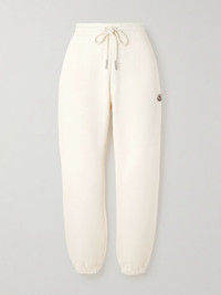 Whether you're in the Alps or lounging at home, Moncler's sweatpants will undoubtedly keep you cozy and warm. They're made from cotton-blend jersey featuring the logo patch at the hip and have a drawstring waist and tapered legs. Wear yours with the coordinating hoodie in our edit. Size & Fit - Fits true to size, take your normal size - Mid-rise intended for a relaxed fit, tapered at the hem - Elasticated at the waist for a comfortable fit - Mid-weight, slightly stretchy fabric - Model is 177cm/ 5'10" and is wearing a size Small Model measurements: - Bust: 80cm/ 31.5" - Waist: 60cm/ 23.5" - Hip: 89cm/ 35" Details & Care - Cream cotton-blend jersey - Pull on - 85% cotton, 15% polyamide - Machine wash