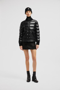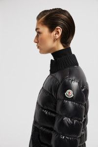 Emblematic of the women's collection, the Arcelot pairs a bold, glossy finish with soft, knit details. Lightweight and water-repellent, the Arcelot women's down jacket is crafted from nylon laque. The short puffer pairs the glossy fabric with a plush knit trim for added warmth—a detail found throughout the collection. DETAILS - Crafted from nylon laque - Longue saison lining - Down-filled - Zipper closure - Pockets with snap button closure - Sleeve pocket with snap button closure - Knit collar, pockets and cuffs - Hem with drawstring fastening SIZE AND FIT - The model is wearing a size 0 and is 178 cm tall - The model measures: bust 75 cm, waist 58 cm, hips 88 cm - Regular fit COMPOSITION EXTERIOR: 100% Polyamide / Nylon; Ribs: 100% Virgin wool; LINING: 100% Polyamide / Nylon; PADDING: 90% Down, 10% Feather Product code J20931A000155963V999 Made in Romania