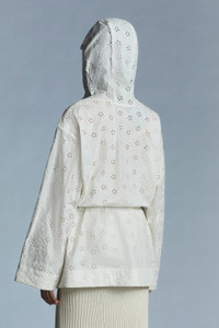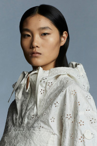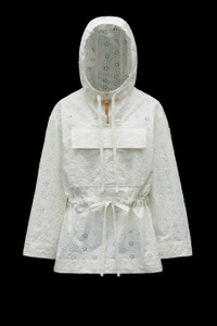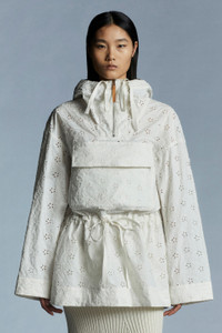 Utilitarian, yet feminine, the Asnen cape from the 2 Moncler 1952 collection is crafted from cotton canvas enriched with broderie anglaise. A utilitarian perspective is mixed with feminine allure and a metropolitan attitude in the Asnen cape from the 2 Moncler 1952 collection. Crafted from coated cotton canvas enriched with broderie anglaise, the cape boasts a voluminous shape accentuated by an adjustable waistline. - Crafted from resin-coated cotton canvas with broderie anglaise embroidery - Unlined - Internal piping, drawstring waist and hood in resin-coated cotton canvas - Hood - Closure with metal zipper and recycled ribbon - Zipper puller in synthetic material - Embroidered patch logo on ribbon with tone-on-tone Moncler lettering SIZE AND FIT - The model is wearing a size 1 and is 178 cm tall - Loose fit COMPOSITION AND CARE 1 MATERIAL: 100% Cotton; BASE FABRIC: 100% Cotton Do not wash; Do not bleach; Do not tumble dry; Ironing maximum temperature 110°C - without steam; Dry cleaning in tetrachloroethene or with hydrocarbons - mild process; Do not professionally wet clean; Flat dry in the shade; Wash separately; Remove detachable accessories before washing; It is advisable to wash and iron the garment on reverse. Product code H10941D00001M1429034 Made in Italy