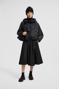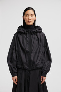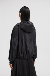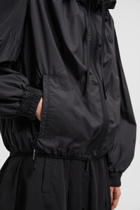 Emblematic of the women's collection, the Auxonne windbreaker plays with texture and movement. Feminine, with a twist, the Auxonne windbreaker pairs a ruched neckline with a pleated back and sleeves. An essential for Fall, the jacket is crafted from soft polyester and completed by a hood for added protection from the elements. DETAILS - Crafted from polyester - Adjustable hood - Hood and collar with drawstring fastening - Pleated sleeves and back - Zipper closure - Zipped patch pockets - Embossed silicone logo patch SIZE AND FIT - The model is wearing a size 0 and is 178 cm tall - The model measures: bust 80 cm, waist 63 cm, hips 90 cm - Regular fit COMPOSITION BASE FABRIC: 100% Polyester Product code J20931A0002754A81999 Made in Romania
