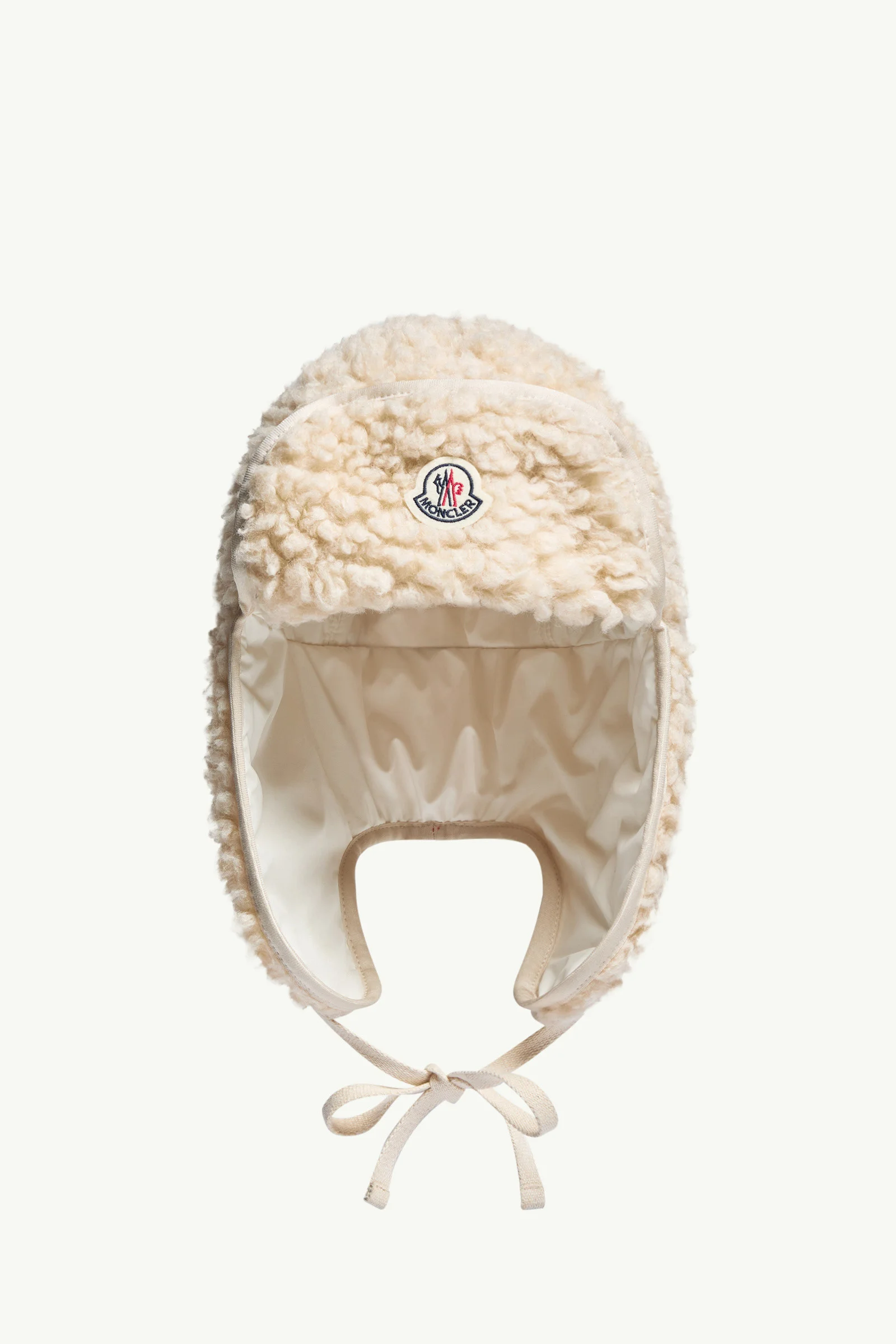 Inspired by the world of aviation, this teddy hat comes in a warm cocooning silhouette with ear flaps. Emblematic of the elegant textures seen throughout the collection, this hat is crafted from teddy. Reminiscent of vintage pilots' helmets, the design features ear flaps and a self-tie closure underneath the chin. DETAILS - Crafted from teddy - Polyester lining - Reversible - Self-tie ribbon closure - Logo patch COMPOSITION BASE FABRIC: 50% Acrylic, 38% Wool, 12% Polyester; LINING: 100% Polyester; PADDING: 100% Polyester Product code K20933B00059M8286P00 Made in Bulgaria