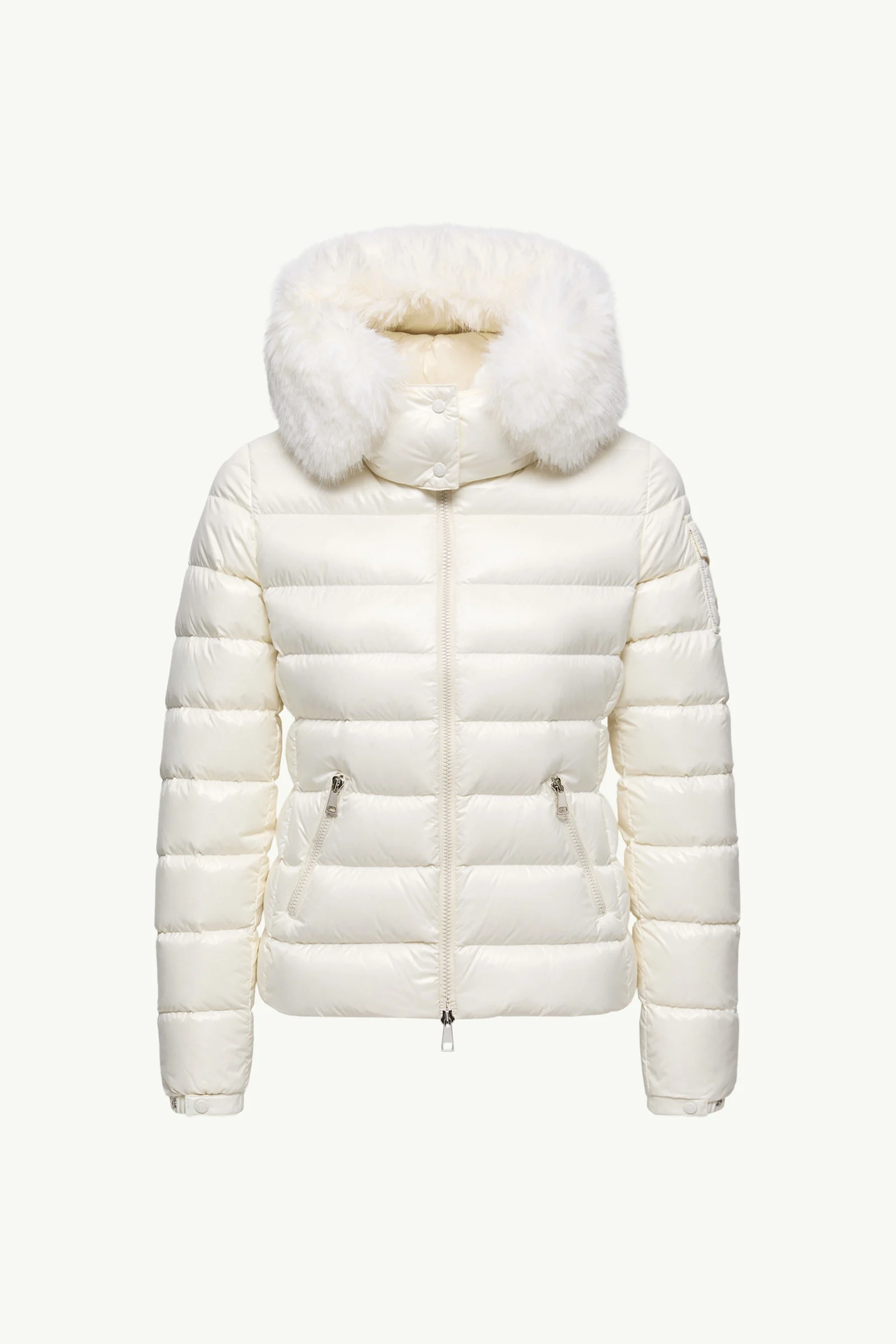Designed to transcend seasons and trends, the hooded Badyf down jacket for women is crafted from nylon laque, and showcases a faux fur hood trim. In line with the collection's clean, graphic aesthetic, the Badyf is a slim fit down jacket crafted from nylon laque. In a play on textures, the glossy puffer is embellished with a faux fur trim along the hood - easily detached depending on the temperature and your mood. DETAILS - Crafted from nylon laque - Nylon laque lining - Down-filled - Detachable faux fur trim - Detachable and adjustable hood - Zipper closure - Flap sleeve pocket - Zipped pockets - Adjustable cuffs SIZE AND FIT - Slim fit - Length (collar to hem): 56 cm COMPOSITION EXTERIOR: 100% Polyamide / Nylon; LINING: 100% Polyamide / Nylon; HOOD LINING: 100% Polyamide / Nylon; PADDING: 90% Down, 10% Feather; 1 MATERIAL: 100% Polyester Product code K20931A002535963V034 Made in Romania