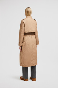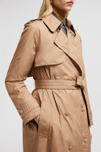 An essential style for the modern woman, the Barbetane reimagines the classic trench coat in a Moncler key. Crafted from polyester, the Barbetane trench coat comes in a timeless double-breasted and belted silhouette. Modern and refined, the down-filled trench layers perfectly over work and eveningwear. DETAILS - Crafted from brushed polyester - Brushed polyester lining - Longue saison inner front - Down-filled - Yoke - Snap button closure - Pockets - Fabric belt SIZE AND FIT - The model is wearing a size 0 and is 176 cm tall - The model measures: bust 79 cm, waist 60 cm, hips 85 cm - Loose fit - Belted COMPOSITION EXTERIOR: 100% Polyester; LINING: 100% Polyamide / Nylon; PADDING: 90% Down, 10% Feather;LEATHER TAG: COW LEATHER Product code J20931C0000654AQE513 Made in Romania