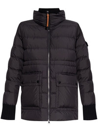 Baux down jacket Highlights - Black - Padded design - Down-feather filling - Front two-way zip fastening - High neck - Long sleeves - Logo patch at the sleeve - Sleeve flap pocket - Branded zip puller - Two front flap pockets - Ribbed cuffs - Straight hem Imported Composition Outer: Polyester 100%, Virgin Wool 100% Lining: Polyester 100%, Down 90%, Feather 10% SIZE & FIT FittingInformation Designed for a relaxed fit, this piece allows for comfort and movement when worn The adjustable drawstring means that you can adjust this piece’s fit to suit your comfort and preference Made from a padded non-stretch fabric, giving it no natural elasticity