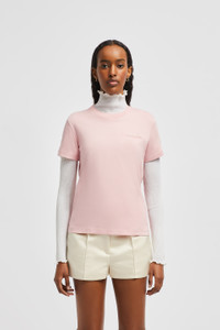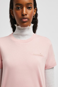 Essentials in the women's collection are reimagined with graphic details. This short-sleeved t-shirt features a beaded logo. An everyday staple, this short sleeved t-shirt is adorned with an beaded logo. A versatile design fit for a range of occasions, the crew neck is crafted from comfortable cotton jersey. DETAILS - Crafted from cotton jersey - Crew neck - Short sleeves - Embroidered logo with beads SIZE AND FIT - The model is wearing a size XS and is 178 cm tall - The model measures: bust 80 cm, waist 60 cm, hips 87 cm - Regular fit COMPOSITION BASE FABRIC: 100% Cotton; Ribs: 100% Cotton Product code J20938C0001389AIJ52B Made in Turkey