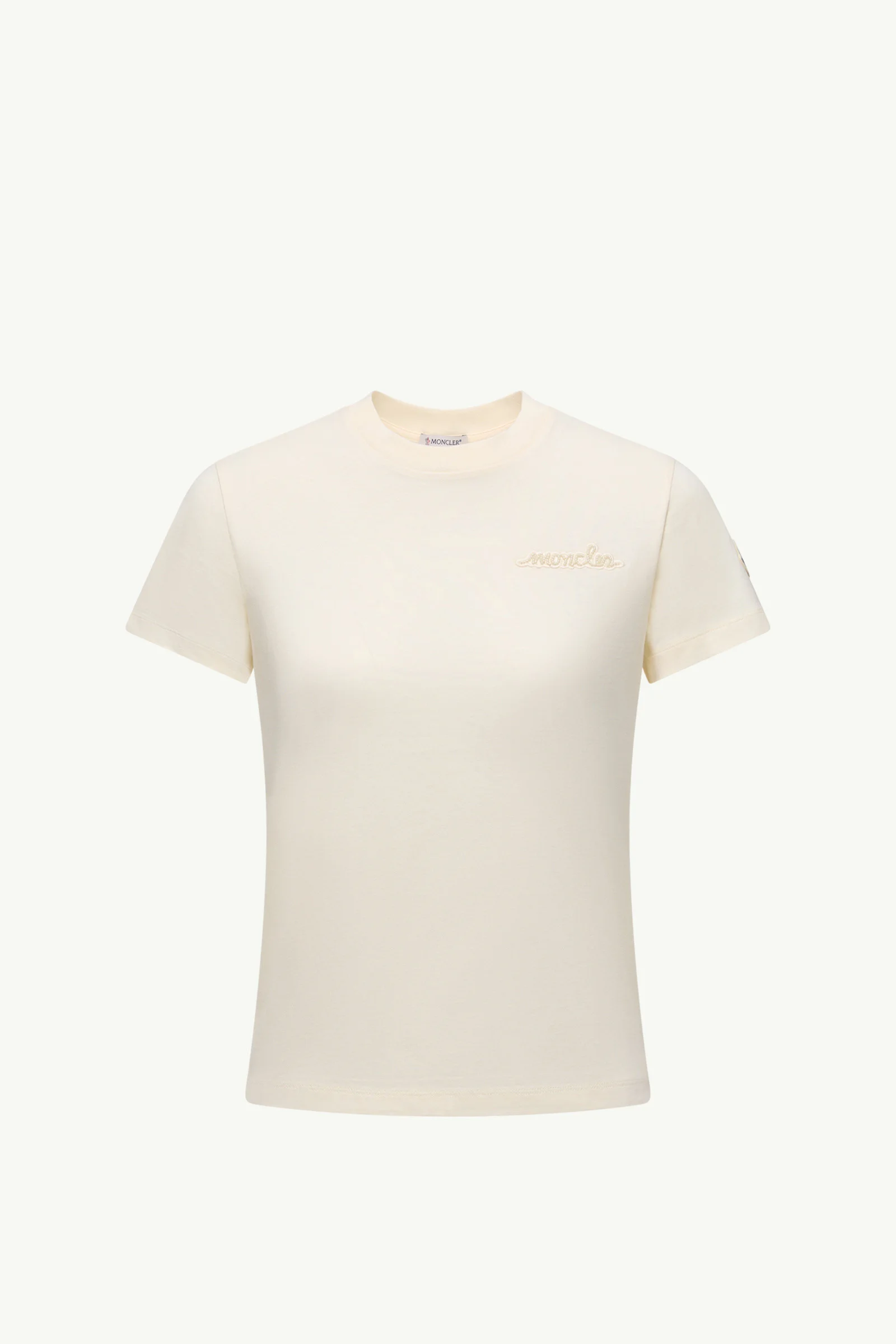 Essentials in the women's collection are reimagined with graphic details. This short-sleeved t-shirt features a beaded logo. An everyday staple, this short sleeved t-shirt is adorned with an beaded logo. A versatile design fit for a range of occasions, the crew neck is crafted from comfortable cotton jersey. DETAILS - Crafted from cotton jersey - Ribbed crew neck - Short sleeves - Embroidered logo with beads SIZE AND FIT - The model is wearing a size XS and is 177 cm tall - Regular fit COMPOSITION BASE FABRIC: 100% Cotton; Ribs: 100% Cotton Product code K20938C0001989AIJ034 Made in Turkey