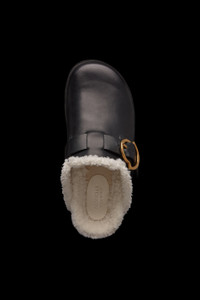 A transversal design from the women's collection, the Bell mules are crafted from supple leather. Worn alone during the warmer months or with plush socks when the temperatures drop, the Bell mules are a casual wardrobe essential. The lightweight mules are crafted from the softest leather. A faux fur trim further enhances comfort. - Leather and faux fur upper - Leather welt - Faux fur insole - Micro rubber midsole - Buckle fastening with metal logo - EVA tread - Sole height 2 cm COMPOSITION AND CARE LINING: 100% Polyester; SOLE: 100% Elastodiene;UPPER: COW To protect your purchase over time, we recommend the shoes be cleaned using a brush with soft natural bristles or a slightly damp soft cloth. Before cleaning, make sure that the shoes are completely dry. After brushing, apply an appropriate amount of cleaning product to the leather and create small circular motions with a soft dry cloth. For suede shoes, please use a special rubber brush. We also recommend the use of a suitable water-repellent product before wearing the shoes in wet conditions. Dry away from direct heat. Finish the cleaning using a dry clean cloth. Store in the felt bag provided at the time of purchase. Product code I209B4M00110M3596999 Made in Italy