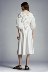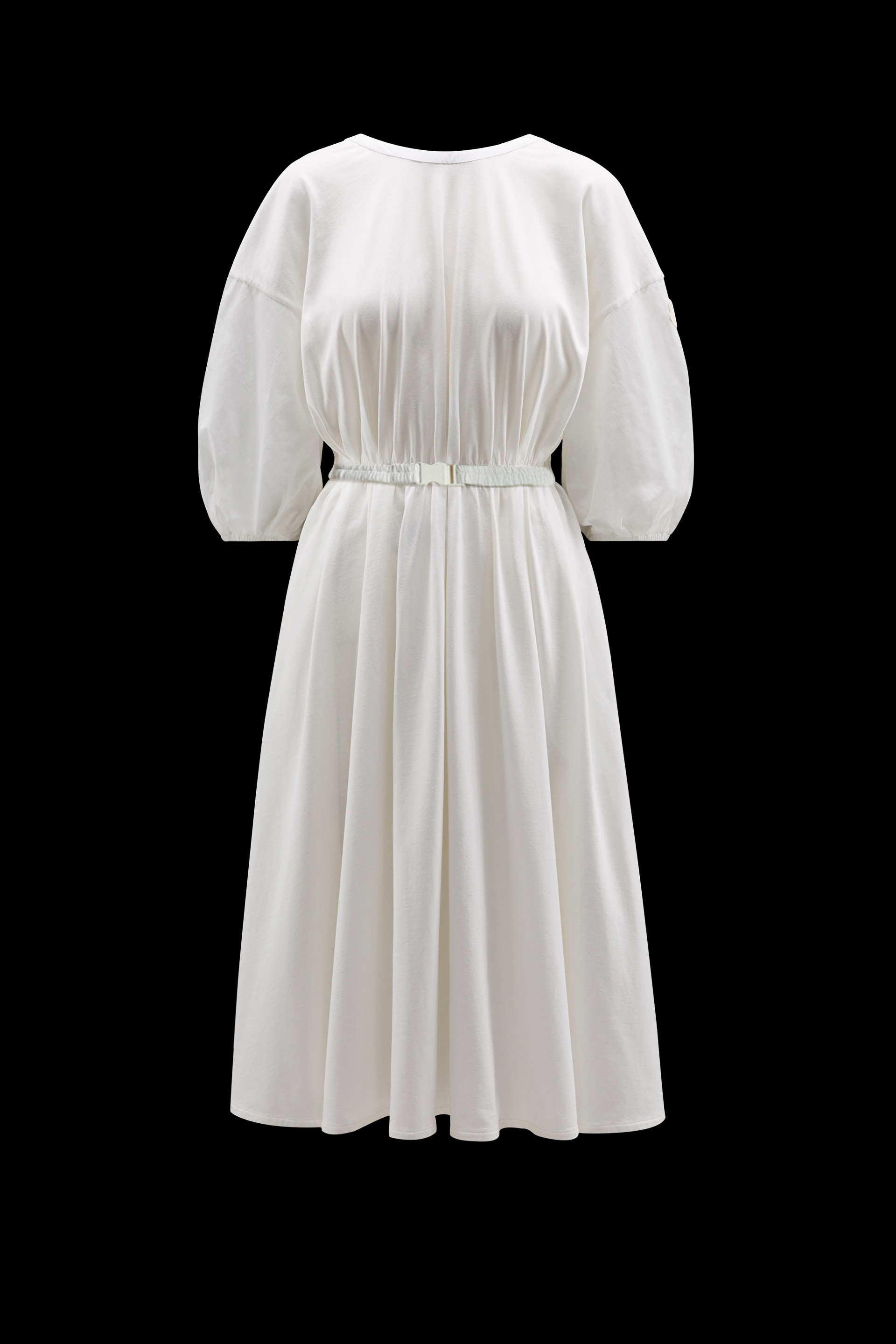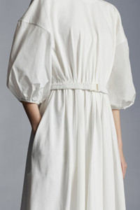 Worn in the office or on weekends, this cotton jersey midi dress is a sophisticated wardrobe staple. A timeless addition to a feminine wardrobe, this midi dress will easily become an on- and off-duty uniform. Crafted from cotton jersey, the style accentuates the silhouette with an elasticized belt. - Crafted from cotton jersey - Taffeta 3/4 sleeves - Ton-sur-ton grosgrain logo patch - Snap button closure - Adjustable elasticized taffeta belt with buckle - Side pockets - Hem with internal herringbone ribbon SIZE AND FIT - The model is wearing a size 1 and is 178 cm tall - The model measures: chest 79 cm, waist 64 cm, hips 87 cm COMPOSITION AND CARE 1 MATERIAL: 100% Polyester; BASE FABRIC: 100% Cotton Wash max 30°C - Mild process; Do not bleach; Do not tumble dry; Ironing maximum temperature 110°C - without steam; Dry cleaning in tetrachloroethene or with hydrocarbons - mild process; Professional wet cleaning - mild process; Flat dry in the shade; Wash separately; Wash inside out; Iron inside out; PROTECT TRIMS WHILE WASHING Product code H10938I00011829HP033 Made in Turkey
