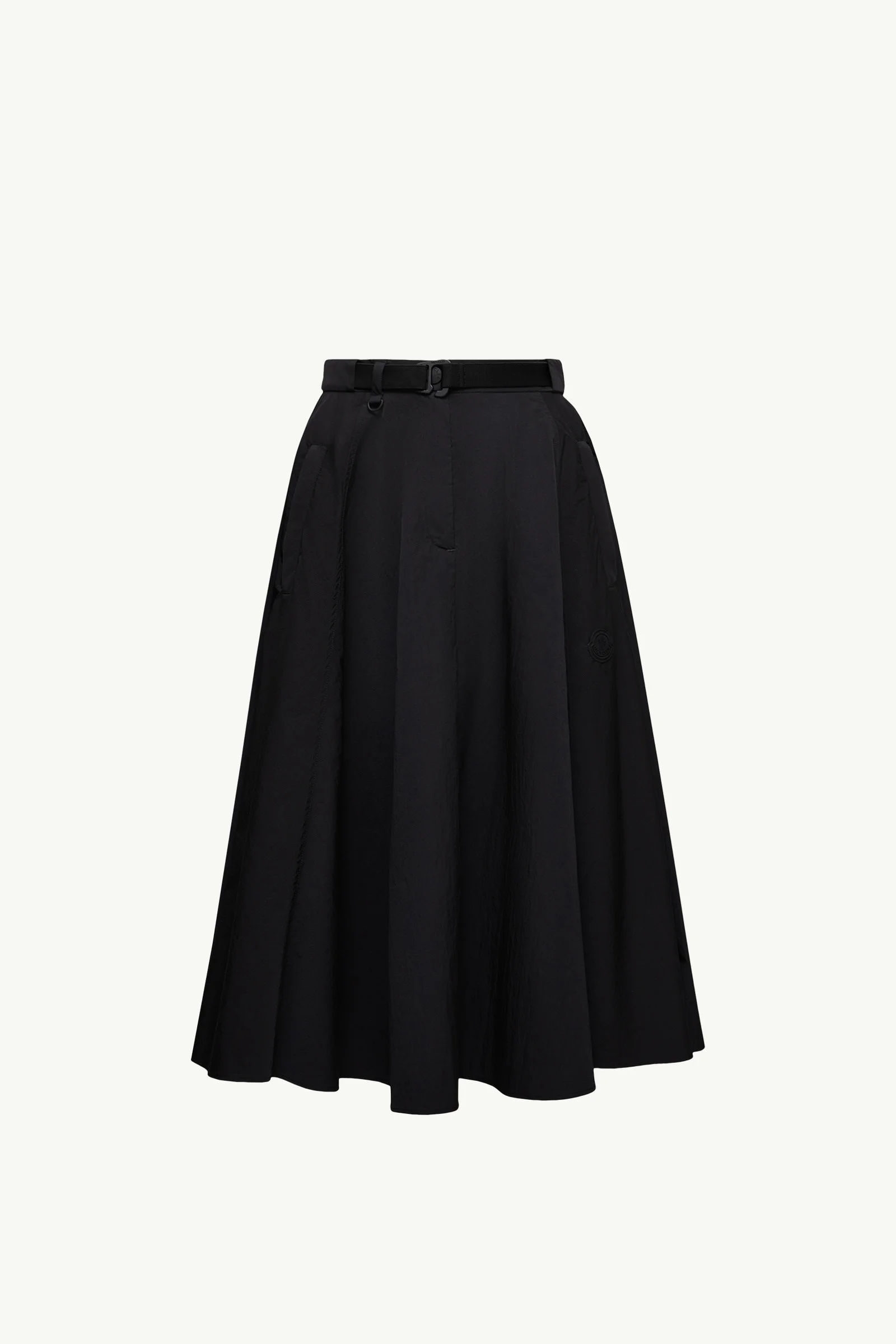 Inspired by styles from the '90s, this women's midi skirt fuses a minimalist aesthetic with a feminine silhouette. A skirt that pairs a streamlined design with feminine details, this style is crafted from nylon. The piece features a pleated effect while a detachable belt allows you to adapt the silhouette. DETAILS - Crafted from washed nylon - Detachable elastic belt - Zipper and snap button closure - Zipped side pockets - Silicone logo patch SIZE AND FIT - The model is wearing a size 40 and is 178 cm tall COMPOSITION EXTERIOR: 100% Polyamide / Nylon; LINING: 100% Viscose / Rayon Product code K20932D00019597V5999 Made in Romania