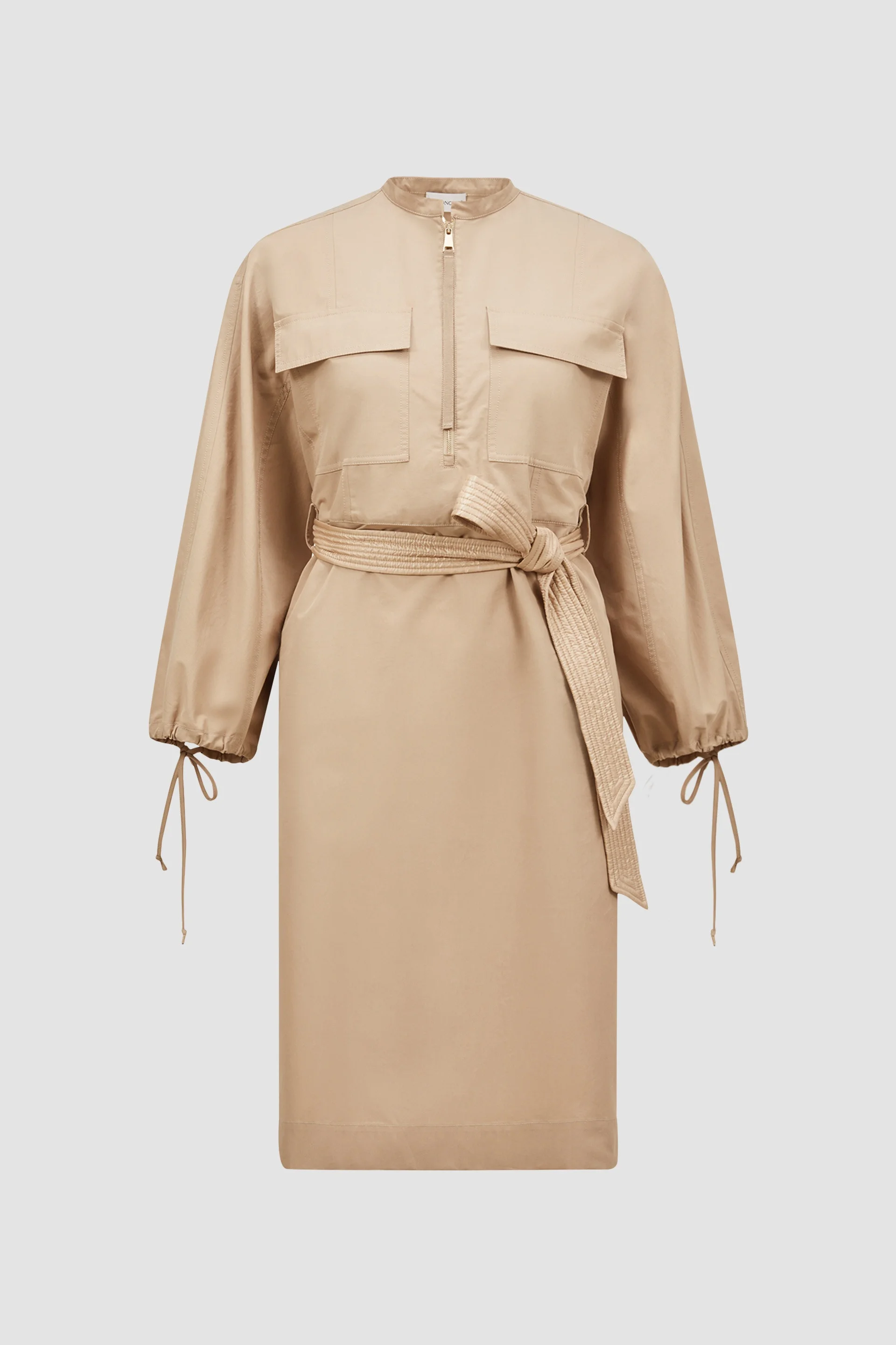 Effortlessly worn across seasons, this midi dress for women is crafted from lightweight poplin. A modern interpretation of a shirt dress, this piece features a zipper closure and patch pockets. The poplin design can easily move from a loose to more feminine shape with an adjustable neckline, sleeves and waist. DETAILS - Crafted from technical poplin - Adjustable sleeves with drawstring fastening - Half-zipper closure - Patch pockets - Detachable belt - Side slits SIZE AND FIT - The model is wearing a size 40 and is 180 cm tall - The model measures: bust 80 cm, waist 63 cm, hips 87 cm COMPOSITION BASE FABRIC: 70% Cotton, 30% Polyester; DETAILS PADDING: 100% Polyester; 1 MATERIAL: 100% Polyamide / Nylon Product code K10932G0000559866202 Made in Hungary