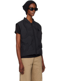Down-filled and quilted nylon taffeta vest. · Stand collar · Two-way zip closure · Logo patch at chest · Zip pockets · Fully lined · Logo-engraved black hardware Supplier color: Black Fill: 90% goose down, 10% goose feather. Body: 100% polyamide. Lining: 100% polyamide. Made in Romania 242111F068003