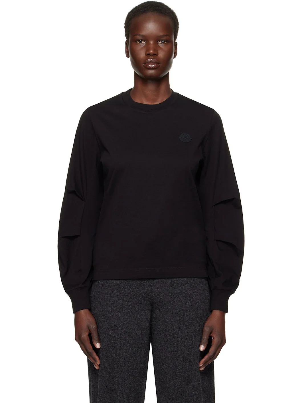 Garment-washed cotton jersey T-shirt. · Rib-knit crewneck and cuffs · Rubberized logo patch at chest · Pleats at sleeves Supplier color: Black