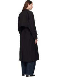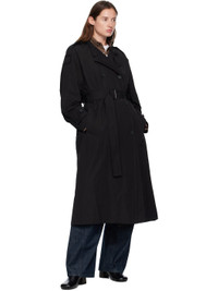 Double-faced cotton-blend poplin trench coat. · Stand collar · Double-breasted button closure · Belt loops with detachable belt at waist · Welt pockets at waist · Rubber logo patch at sleeve · Pleated storm flap at back yoke · Vented back hem · Unlined Supplier color: Black 60% polyester, 40% cotton. Made in Italy 252111F067000