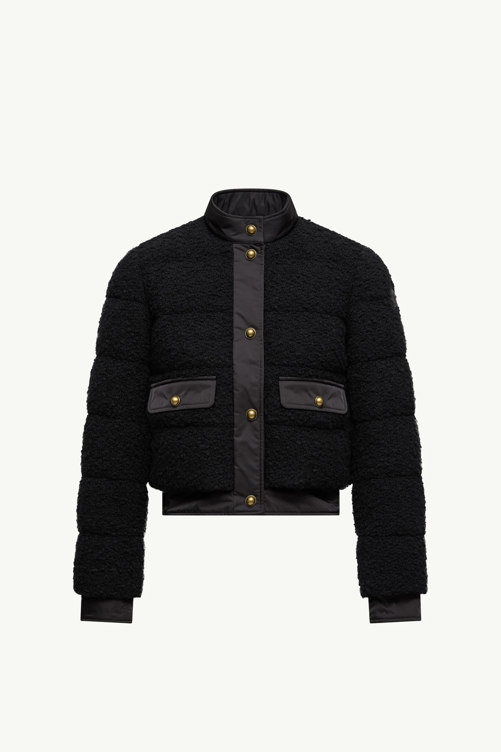 Synonymous with contemporary elegance, the women's Blandy short down jacket is influenced by fabrics from the world of tailoring. Presenting an elevated vision of outerwear, the Blandy short down jacket is made from wool blend boucle. The fabric stands out for its unique three-dimensional texture and plush feel. A contrasting trim in smooth gabardine completes the warmer, creating a layered effect. DETAILS - Crafted from wool blend boucle - Longue saison lining - Micro gabardine collar, front and cuffs - Down-filled - Pockets with snap button closure - Leather logo patch SIZE AND FIT - The model is wearing a size 0 and is 177 cm tall - Regular fit - Length (collar to hem): 50 cm COMPOSITION EXTERIOR: 41% Acrylic, 35% Wool, 24% Polyester; LINING: 100% Polyamide / Nylon; PADDING: 90% Down, 10% Feather; DETAILS PADDING: 100% Polyester; 1 MATERIAL: 100% Polyester;LEATHER TAG: CALF Product code K20931A00193598XQ999 Made in Romania