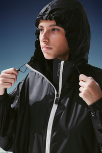 Light, hooded jacket crafted from micro ripstop. The packable design is part of the Grenoble Day-namic collection. Inspired by the concept of athleisure, the Blavy windbreaker adapts well to a range of outdoor activities as well as everyday city commutes. A part of the Grenoble Day-namic collection, the hooded jacket is crafted from micro ripstop and can be easily packed into the accompanying pouch, allowing for an ever-changing, flexible look for those always on-the-go. - Crafted from micro ripstop - Unlined - Packable in the contrasting logo print pouch - Dropped shoulders - Elasticized waistline with adjustable drawstring - Fixed hood with length-adjustable elastic drawstring - Die-cast zipper closure with double sliders and silicone zipper pull with Moncler lettering and tricolor detail, photoluminescent edging in long saison - Die-cast zipper pockets with reflective frame in contrasting color - Sleeve edges with internal elastic and length-adjustable branded snap buttons - Reflective 'Day-namic' writing on the right sleeve edge - Embossed Moncler logo in black nylon laqué on left sleeve - Oversized fit SIZE AND FIT - The model is wearing a size 1 and is 179 cm tall - The model measures: chest 82 cm, waist 59 cm, hips 88 cm COMPOSITION AND CARE LINING: 100% Polyamide / Nylon; HOOD LINING: 100% Polyamide / Nylon; PADDING: 90% Down, 10% Feather; DETAILS PADDING: 100% Polyester; 1 MATERIAL: 100% Polyamide / Nylon; BASE FABRIC: 100% Polyester Wash max 30°C - Mild process; Do not bleach; Do not tumble dry; Ironing maximum temperature 110°C - without steam; Do not dry clean; Professional wet cleaning - mild process; Dry flat; Wash separately; do not soak; It is advisable to wash and iron the garment on reverse.; Do not iron printed part Product code G209J1A0000353693999 Made in Romania
