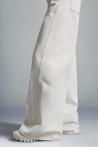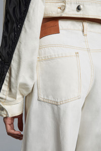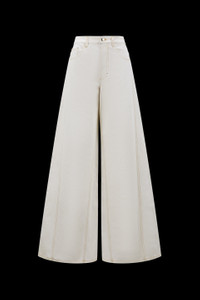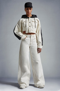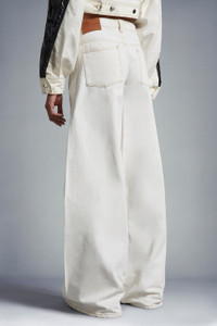 A cool city-ready mix of simplicity and individuality, these wide-leg jeans for women are part of the Moncler x Alicia Keys collection. The latest evolution of Moncler Genius lands in a place where dreams are made, in a defining collaboration with Alicia Keys. These statement, oversized jeans are cut with a wide leg and crafted from bleached denim. - Crafted from bleached denim - Button and zipper closure - 5 pockets with pocket bags in light cotton - Leather label SIZE AND FIT - The model is wearing a size 48 and is 176 cm tall - The model measures: bust 82 cm, waist 63 cm, hips 88 cm COMPOSITION AND CARE BASE FABRIC: 100% Cotton;LEATHER TAG: COW Hand wash; Do not bleach; Do not tumble dry; Ironing maximum temperature 110°C - without steam; Do not dry clean; Do not professionally wet clean; Flat dry in the shade; Wash separately; Do not twist or wring; Do not iron decorations; do not soak; It is advisable to wash and iron the garment on reverse. Product code I109F2A00003M2953032 Made in Italy