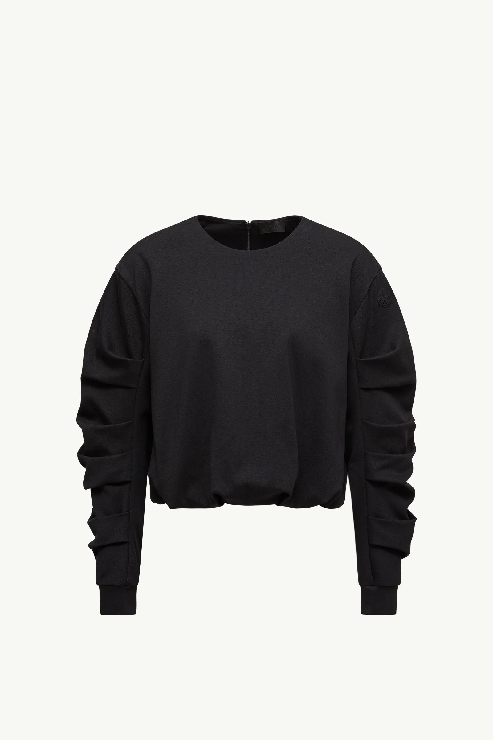 Casualwear meets elegance in this crew neck sweatshirt for women softened with pleated accents. Infusing a practical piece with a feminine touch, this sweatshirt plays with shapes. Crafted from soft cotton interlock, the style is defined by a structured silhouette with puffed, pleated sleeves. DETAILS - Crafted from cotton interlock - Cotton jersey lining - Crew neck - Half-zipper closure at the back - Pleated sleeves and hem - Silicone logo patch SIZE AND FIT - The model is wearing a size XS and is 179 cm tall - Regular fit COMPOSITION BASE FABRIC: 100% Cotton Product code K20938G0001389AHM999 Made in Italy