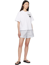 Nylon taffeta shorts. Striped throughout. · Elasticized waistband · Felted logo patch at leg Supplier color: White/Light blue 100% polyamide. Made in Romania 252111F088011