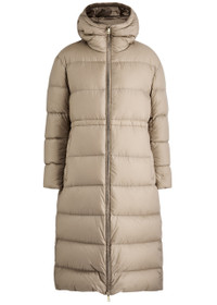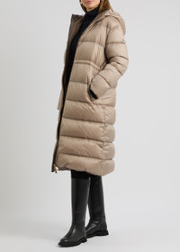 Style Notes Moncler's Boulogne shell coat offers both versatility and protection. Crafted to a long-line fit, this down-padded piece boasts water-repellent and reversible properties; one side features a matte finish and the other has a glossed and quilted appearance. It's also worked to a hooded profile with an adjustable waistband to define the silhouette. Info & Care Moncler shell coat Reversible, quilted, drawstring hood at high-neck, logo plaque at sleeve, two zip-fastening front pockets, internal drawstring waist, fully lined Two-way zip fastening through front 100% polyamide, lining: 100% polyamide; filling:90% down, 10% feather Machine wash Size & Fit Length shoulder to hem: 43.5 inches/ 110.5cm Midweight Regular fit Model is 5'9"/ 175cm and wears a size small