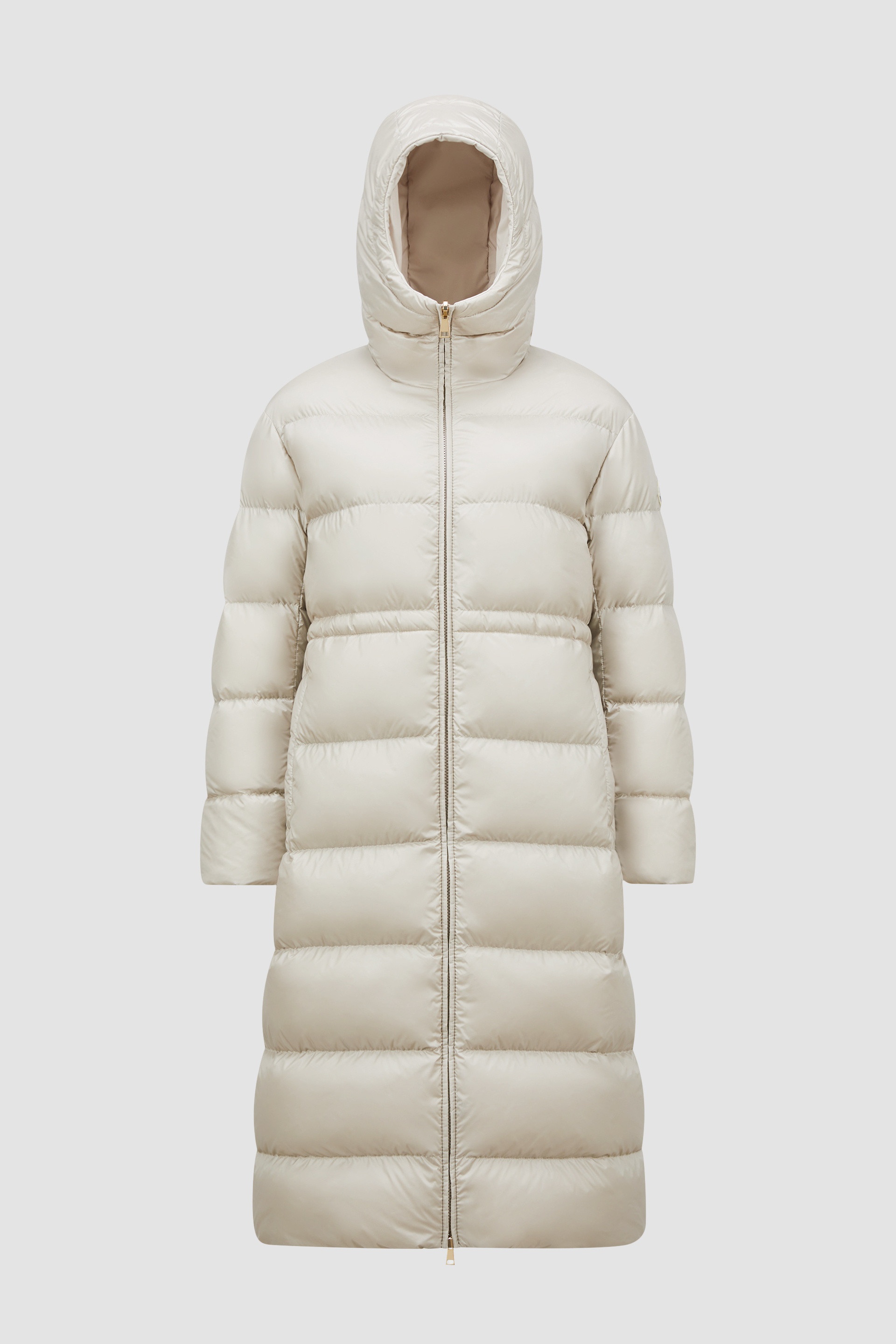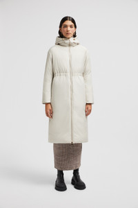 Designed to be versatile, the women's Boulogne long down jacket is reversible with one glossy and one matte face. A dynamic design, the Boulogne down jacket is reversible. The long puffer features one side in brushed polyester with a matte finish, while the other is presented in glossy longue saison. This nylon fabric delivers lightweight warmth with a protective water-repellent finish. The hooded coat is completed by an adjustable waistband, creating a customizable fit. DETAILS - Crafted from longue saison - Brush polyester inner - Down-filled and padded - Reversible - Hood and waist with drawstring fastening - Reversible zipper closure - Zipped pockets SIZE AND FIT - The model is wearing a size 0 and is 177 cm tall - The model measures: bust 73 cm, waist 60 cm, hips 88 cm - Loose fit COMPOSITION EXTERIOR: 100% Polyamide / Nylon; LINING: 100% Polyester; PADDING: 90% Down, 10% Feather; DETAILS PADDING: 100% Polyester Product code J20931C00026595FE268 Made in Moldova