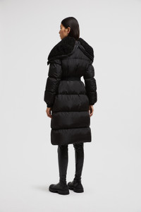 The Bruneaux long down jacket from the women's collection combines a feminine aesthetic with sleek and sporty materials. A forward-thinking design, the Bruneaux down jacket delivers adaptable protection. The long belted puffer is crafted from nylon technique, boasting a silky finish with water-repellent properties. Softened by a faux fur trim, the hood features a zip that allows it to be worn as a collar depending on the weather. DETAILS - Crafted from nylon technique - Polyester lining - Down-filled - Hood with zipper and faux fur lining - Zipper and snap button closure - Zipped pockets - Detachable elastic belt - Elastic waistband and cuffs - Hem with drawstring fastening - Embroidered logo patch SIZE AND FIT - The model is wearing a size 0 and is 180 cm tall - The model measures: bust 74 cm, waist 60 cm, hips 89 cm - Regular fit - Fitted waist - Elasticized belt COMPOSITION EXTERIOR: 100% Polyamide / Nylon; LINING: 100% Polyester; HOOD LINING: 100% Polyester; PADDING: 90% Down, 10% Feather Product code J20931C00033539ZD999 Made in Romania