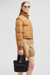 Hand-held or styled on the shoulder, the Caradoc mini tote for women is a bag designed to withstand the test of time. Inspired by the iconic Moncler down jacket, the Caradoc bag is crafted from quilted water-repellent nylon. Boasting an architectural, trapezoid shape, the mini tote fits your daily work or shopping essentials. DETAILS - Crafted from water-repellent nylon - Nylon drill lining - Down-filled - Ribbon handles with leather grip - Adjustable and detachable leather shoulder strap - Zipper closure - Metal logo - Measurements L 30 cm x H 20 cm x D 13 cm COMPOSITION EXTERIOR: 100% Polyamide / Nylon; LINING: 95% Cotton, 5% Acrylic; PADDING: 90% Down, 10% Feather;LEATHER INSERTS: CALF Product code K109B5D00009M6275999 Made in Italy