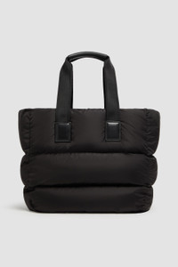 Hand-held or styled on the shoulder, the Caradoc tote for women is a bag designed to withstand the test of time Inspired by iconic Moncler down jackets, the Caradoc bag is crafted from quilted nylon with a water-repellent finish. Boasting an architectural, trapezoid shape, the spacious tote fits your daily work or shopping essentials. DETAILS - Crafted from water-repellent nylon - Nylon drill lining - Down-filled - Ribbon handles with leather grip - Zipper closure - Metal logo - Measurements L 33 cm x H 30 cm x D 22 cm COMPOSITION EXTERIOR: 100% Polyamide / Nylon; LINING: 95% Cotton, 5% Acrylic; PADDING: 90% Down, 10% Feather;LEATHER INSERTS: CALF Product code K109B5D00015M6275999 Made in Italy