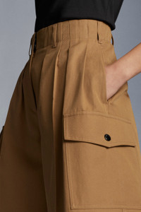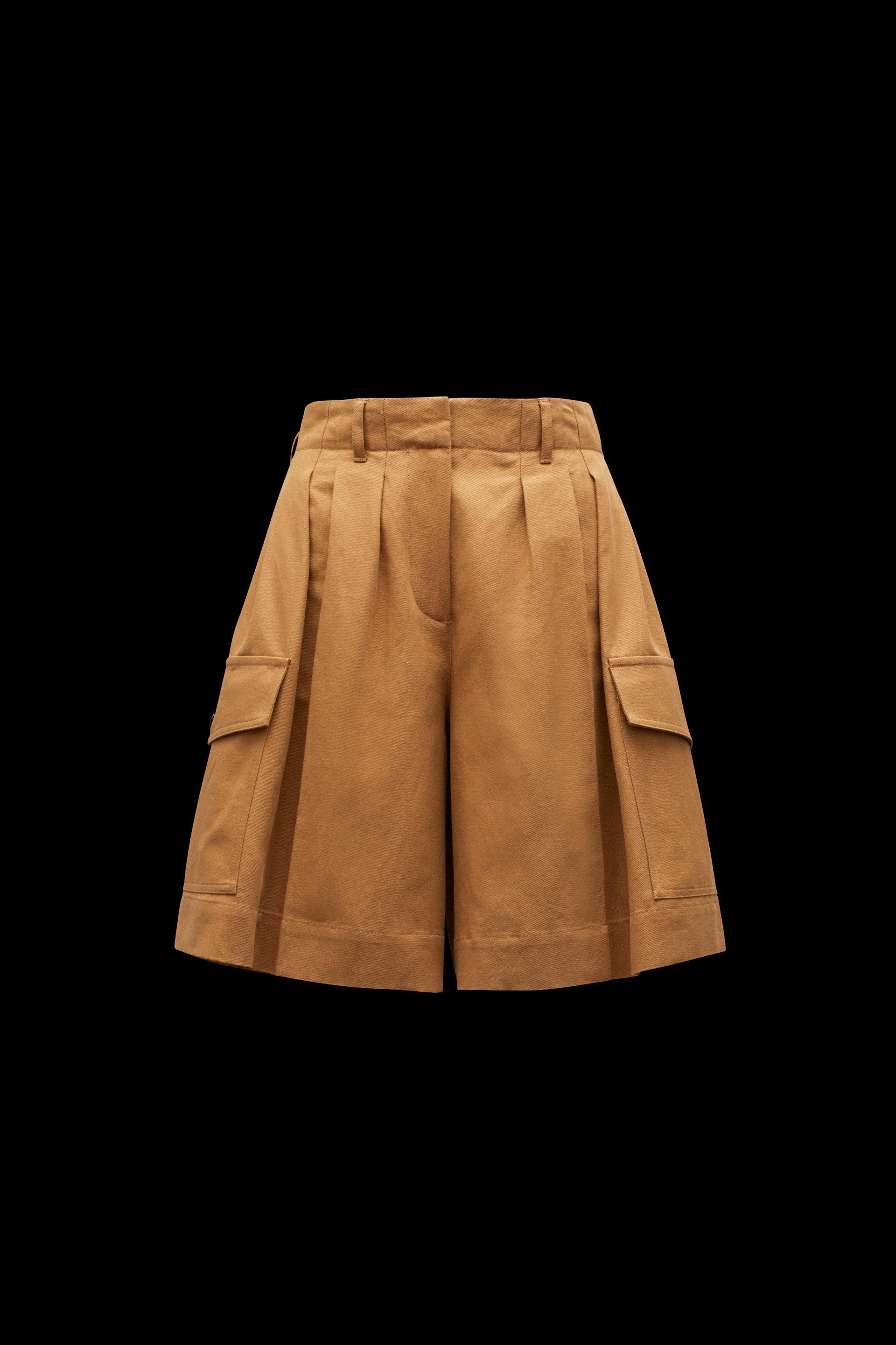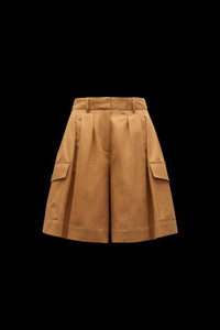 Designed for weekends in the city or leisure times in the mountains, these gabardine cargo shorts for women feature utilitarian details. Crafted from gabardine in a nature-infused colorway, these shorts feature a high waist and wide leg silhouette. Utilitarian at their core, the statement shorts are embellished with cargo pockets. - Crafted from washed gabardine - Zipper and hook closure - Patch pockets on the sides SIZE AND FIT - The model is wearing a size S and is 177 cm tall - The model measures: chest 82 cm, waist 60 cm, hips 89 cm COMPOSITION AND CARE 1 MATERIAL: 100% Polyamide / Nylon; BASE FABRIC: 74% Cotton, 26% Flax/Linen Do not wash; Do not bleach; Do not tumble dry; Ironing maximum temperature 110°C - without steam; Dry cleaning in tetrachloroethene or with hydrocarbons - mild process; Do not professionally wet clean; Flat dry in the shade; Wash separately; It is advisable to wash and iron the garment on reverse. Product code H10932A000125962Q260 Made in Italy