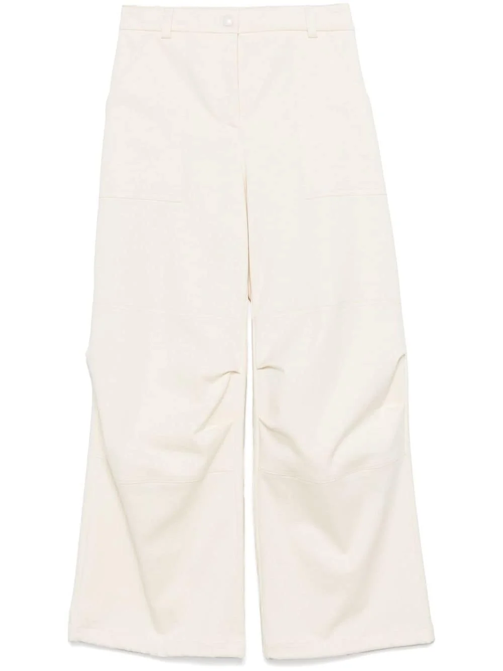 cargo trousers Highlights - Cream white - Stretch-cotton - Twill weave - Front press-stud and zip fastening - Belt loops - Two side patch pockets - Logo patch to the rear - Two rear flap pockets - Ruched detailing - Wide leg Made in Italy Composition Cotton 98%, Elastane 2% SIZE & FIT Model measurements Height 5 ft 9 in(1.75 m) Bust/Chest 31.88 in(81 cm) Hips 34.64 in(88 cm) Waist 24.01 in(61 cm) FittingInformation Designed with a wide-leg cut, these trousers allow for a close fit at the waist and offer a loose and roomy fit over the leg Made from a midweight non-stretch fabric