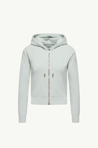 A sophisticated expression of leisurewear, this hooded sweatshirt for women is knit from a wool and cashmere blend. Elevating a casual essential, this sweatshirt is made from a plush blend of wool and cotton. Adding warmth and protection, a hood completes the design. DETAILS - Crafted from a cashmere blend - Interlock stitch - Gauge 12 - Hood - Zipper closure - Knit logo patch SIZE AND FIT - The model is wearing a size XS and is 174 cm tall COMPOSITION BASE FABRIC: 70% Virgin wool, 30% Cashmere Product code L10939B00021M11278L2 Made in Bulgaria