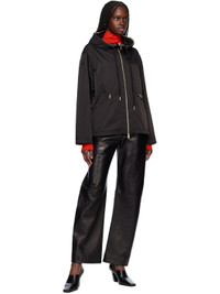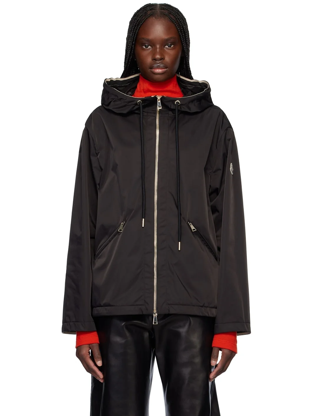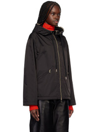 Lightweight polyester gabardine jacket. · Drawstring at hood · Two-way zip closure · Zip pockets · Bungee-style drawstring at hem · Felted logo patch at sleeve · Unlined · Logo-engraved gold-tone hardware Supplier color: Black 100% polyester. Made in Armenia 251111F063049