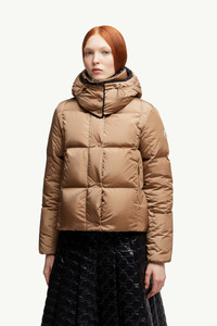 An elegant essential for colder weather, the women's Castelnou short down jacket pairs geometric quilting with a satin finish. Protective materials and elevated textures rise to the fore in the Castelnou down jacket. The short puffer is crafted from nylon technique, a water-repellent fabric with a silky smooth feel. Adding softness, teddy fleece lining on the hood completes the design. DETAILS - Crafted from nylon technique - Longue saison lining - Down-filled - Detachable and adjustable hood with teddy fleece lining - Zipper closure - Zipped pockets COMPOSITION EXTERIOR: 100% Polyamide / Nylon; LINING: 100% Polyamide / Nylon; HOOD LINING: 100% Polyester; PADDING: 90% Down, 10% Feather Product code K20931A00150539ZD226 Made in Romania