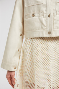 Elegant lines are paired with sophisticated fabrics in the Chatel linen and cotton jacket for women. A classic silhouette is revisited with sharp lines and clean shapes, seen here in the Chatel jacket. The style is crafted from a refined blend of cotton and linen. DETAILS - Crafted from cotton and linen blend twill - Recycled nylon technique lining - Button closure - Patch pockets SIZE AND FIT - The model is wearing a size 0 and is 180 cm tall - Regular fit - Cropped - Elasticized hemline COMPOSITION EXTERIOR: 74% Cotton, 26% Flax/Linen; OUTER BACK: 100% Polyamide / Nylon; LINING: 100% Polyamide / Nylon Product code K10931A00137598G6081 Made in Romania