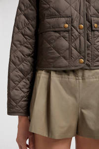 A sophisticated design for warm weather, the Chitre shirt jacket for women pairs soft materials with light quilting. Effortlessly elegant, the Chitre padded jacket is designed for lightweight warmth in milder months. The shirt jacket is crafted from brushed polyester, a breathable fabric with a luxuriously plush feel. Retaining heat without feeling heavy, the piece features classic diamond-quilting. DETAILS - Crafted from recycled brushed polyester - Recycled brushed polyester lining - Padded - Organic cotton canvas collar - Snap button closure - Patch pockets with snap button closure SIZE AND FIT - The model is wearing a size 0 and is 181 cm tall - Regular fit COMPOSITION EXTERIOR: 100% Polyester; LINING: 100% Polyester; PADDING: 100% Polyester; 1 MATERIAL: 100% Polyester; 2 MATERIAL: 100% Cotton Product code K10931A00099788PZ826 Made in Romania