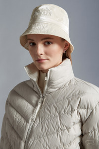 A statement accessory for women, this iridescent bucket hat is crafted from coated nylon. An exploration of brand DNA with a young, contemporary twist, this bucket hat is crafted from coated nylon. A love of lightness is seen through the accessory's iridescent texture and pale color palette. - Crafted from coated nylon - Embroidered logo lettering - Drawstring fastening COMPOSITION AND CARE LINING: 100% Cotton; BASE FABRIC: 100% Polyamide / Nylon Wash max 30°C - Mild process; Do not bleach; Do not tumble dry; Ironing maximum temperature 110°C - without steam; Do not dry clean; Professional wet cleaning - mild process; Flat dry in the shade; Wash separately; Iron with a cloth between; do not expose to heat; It is advisable to wash and iron the garment on reverse. Product code I10933B0001253A3H030 Made in China or Italy