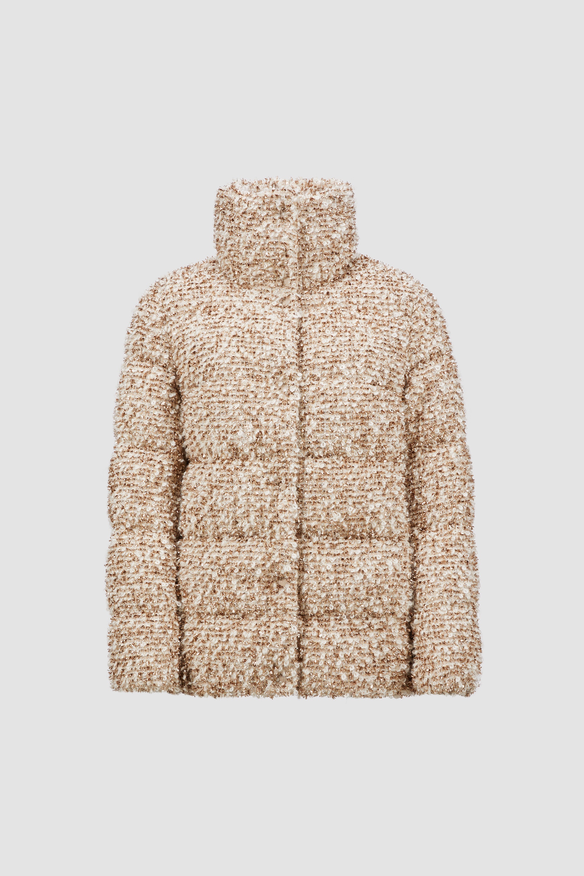 An elevated take on a classic down jacket for women, the Cochevisse short puffer is crafted from a metallic mohair and wool boucle blend. Exploring new textures and fabrics, the Cochevisse is a sophisticated take on the classic down jacket. The boucle puffer is crafted from an innovative mohair, cotton and wool blend. Remaining soft to the touch, the material is interwoven with metallic thread that shimmers in the light. The warmer's elegant finish allows the piece to move seamlessly between AM and PM. DETAILS - Crafted from mohair, cotton and wool boucle with metallic thread - Longue saison lining - Down-filled - Snap button closure - Zipped pockets SIZE AND FIT - The model is wearing a size 0 and is 180 cm tall - The model measures: bust 74 cm, waist 60 cm, hips 89 cm - Loose fit COMPOSITION EXTERIOR: 38% Mohair, 15% Cotton, 13% Virgin wool, 11% METALLIZED FIBER, 10% Polyamide / Nylon, 10% Acrylic, 3% Viscose / Rayon; LINING: 100% Polyamide / Nylon; PADDING: 90% Down, 10% Feather Product code J20931A001625980WM32 Made in Romania