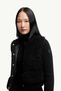 Easily worn in any season, this padded cardigan from the women's collection is characterized by plush fabrics. A year-round essential, this cardigan is enhanced with a down-filled back in lightweight nylon. The crew neck is knit from soft wool, further accentuated by a plush teddy front. DETAILS - Crafted from carded wool - Longue saison lining - Teddy front - Down-filled longue saison back - Stockinette stitch and rib knit - Gauge 3 - Crew neck - Snap button closure - Front pockets - Leather logo patch SIZE AND FIT - The model is wearing a size XS and is 177 cm tall - Slim fit COMPOSITION OUTER BACK: 100% Polyamide / Nylon; OUTER FRONT: 100% Polyester; BASE FABRIC: 100% Virgin wool; FRONT LINING: 100% Polyamide / Nylon; BACK LINING: 100% Polyamide / Nylon; PADDING: 90% Down, 10% Feather;LEATHER TAG: CALF Product code K20939B00040M1241999 Made in Romania