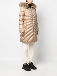 Chandre quilted coat Highlights - Beige - Feather down - Shearling collar - Front zip fastening - Long sleeves - Two side zip-fastening pockets - Straight hem Imported Composition Lining: Polyamide 100%, Feather Down 100% Outer: Sheep Skin/Shearling 100%, Polyamide 100% SIZE & FIT Model measurements Height 5 ft 11 in(1.8 m) Bust/Chest 33.07 in(84 cm) Hips 37 in(94 cm) Waist 25.59 in(65 cm) FittingInformation Designed for a slim fit that sits just away from the body offering a close yet comfortable fit Made from a padded non-stretch fabric, giving it no natural elasticity This piece fits true to size – take your usual size Washing instructions Hand Wash