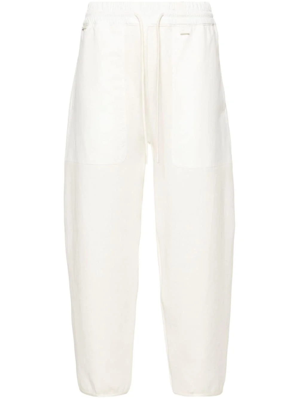 contrasting-panels track pants Highlights - White - Cotton blend - Pique weave - Contrasting-fabric panels - Tapered leg - Elasticated drawstring waistband - Two side slit pockets - Two rear zip-fastening pockets - Straight hem Made in Italy Composition Cotton 100%, Polyester 100% SIZE & FIT Model measurements Height 5 ft 11 in(1.8 m) Bust/Chest 34.25 in(87 cm) Hips 35.82 in(91 cm) Waist 24.8 in(63 cm) FittingInformation Designed for a relaxed tapered cut, these trousers allow for a close fit at the waist and offer a loose fit at the thighs, with a closer fit toward the ankles The elasticated waist allows for a comfortable fit Made from a midweight non-stretch fabric, this piece offers minimal elasticity when worn This piece fits true to size – take your usual size Washing instructions Machine Wash