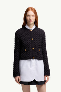 Adding an elegant touch to a cold weather wardrobe, this heavy knit cardigan for women features a textured finish. Distinguished through its cable knit finish, this cardigan is crafted from a cotton blend. The crew neck is completed by gold-toned hardware, adding a sophisticated finishing touch. DETAILS - Crafted from a cotton and polyester blend - Cable knit - Gauge 3 - Crew neck - Snap button closure - Patch pockets with snap button closure SIZE AND FIT - The model is wearing a size XS and is 176 cm tall COMPOSITION BASE FABRIC: 68% Cotton, 32% Polyester Product code K20939B00004M7105778 Made in Bulgaria