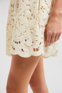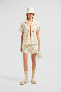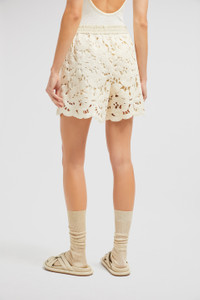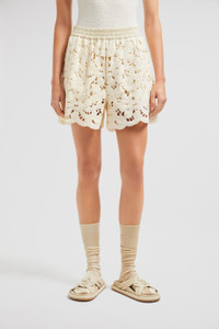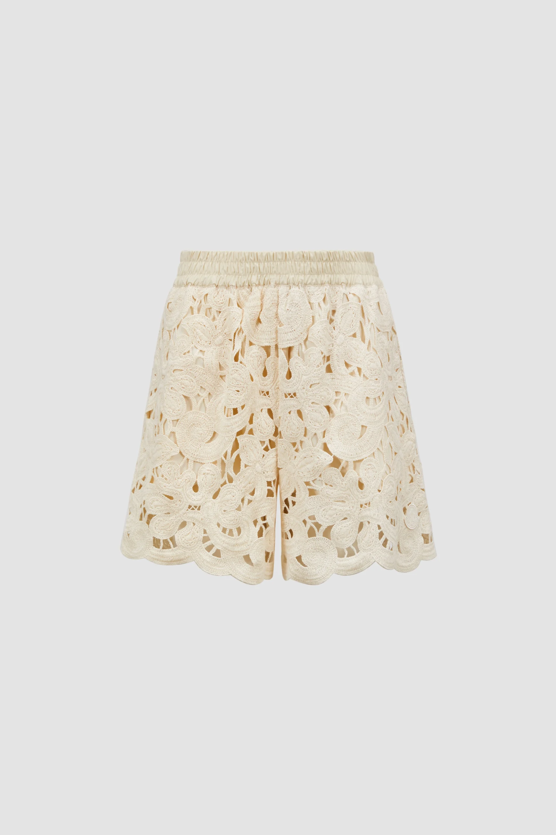 An elegant design for fair weather, these shorts for women feature a floral macrame pattern. Inspired by the botanical world, these shorts are embellished with macrame flowers. Creating a breezy summer set, the cotton blend bottoms can be paired with coordinating pieces. DETAILS - Crafted from cotton and polyester blend - Cotton and nylon blend lining - Elastic waistband - Side pockets - Floral macrame pattern - Logo patch SIZE AND FIT - The model is wearing a size 40 and is 178 cm tall COMPOSITION EXTERIOR: 88% Cotton, 12% Polyester; LINING: 54% Cotton, 46% Polyamide / Nylon Product code K10932B00018598LR060 Made in Hungary