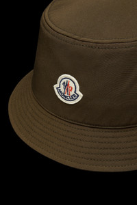 A casual staple for women, this bucket hat is crafted from cotton. A contemporary accessory, this bucket hat is featured in an outdoor-inspired palette. A Moncler logo patch adds a bold touch of branding. - Crafted from microcoton - Logo COMPOSITION AND CARE LINING: 100% Cotton; BASE FABRIC: 85% Polyester, 15% Cotton Hand wash; Do not bleach; Do not tumble dry; Ironing maximum temperature 110°C - without steam; Do not dry clean; Do not professionally wet clean; Flat dry in the shade; Wash separately; Wash inside out; Do not twist or wring; do not soak Product code H20933B0005257843828 Made in Bulgaria