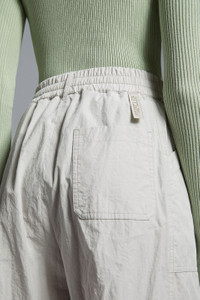 A casual addition to a woman's wardrobe, this cargo pants are crafted from cotton. An exploration of the brand's outdoor roots with a young, contemporary twist, these cargo pants are crafted from technical cotton. The lightweight design's shape is accentuated by an elasticized waist and ankle cuffs. - Crafted from lightweight technical cotton - Waistband with drawstring fastening - Front slant pockets - Patch pockets SIZE AND FIT - The model is wearing a size 40 and is 180 cm tall - The model measures: bust 81 cm, waist 60 cm, hips 87 cm COMPOSITION AND CARE BASE FABRIC: 100% Cotton Hand wash; Do not bleach; Do not tumble dry; Ironing maximum temperature 110°C - without steam; Dry cleaning in tetrachloroethene or with hydrocarbons - mild process; Do not professionally wet clean; Flat dry in the shade; Wash separately; Do not twist or wring; do not soak; It is advisable to wash and iron the garment on reverse.; PROTECT TRIMS WHILE WASHING Product code I10932A00014596LP90D Made in Romania