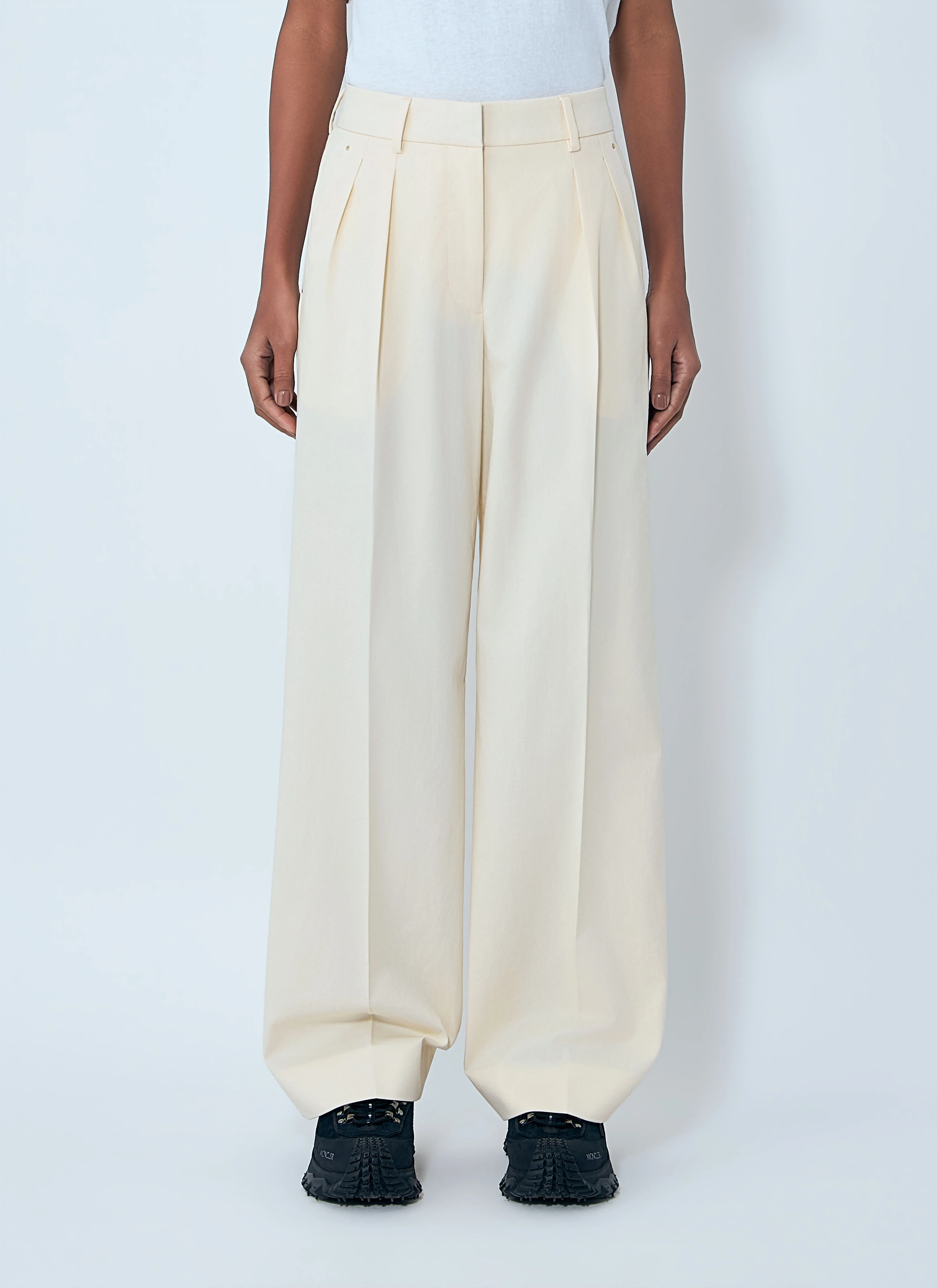 Wide-leg tailored trousers in structured fabric. - Mid rise - Hook-and-eye and zip fastening - Front pleats - Belt loops - Side slip pockets - 100% Cotton. Specialist dry clean - Color: Cream - Code: L1093 2A00004 599CG 051